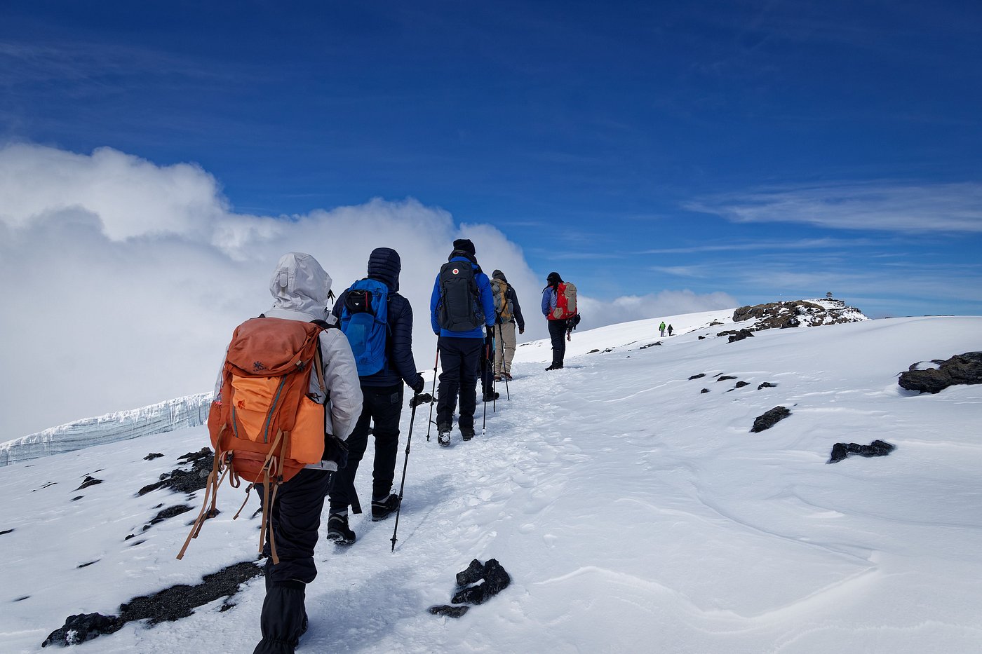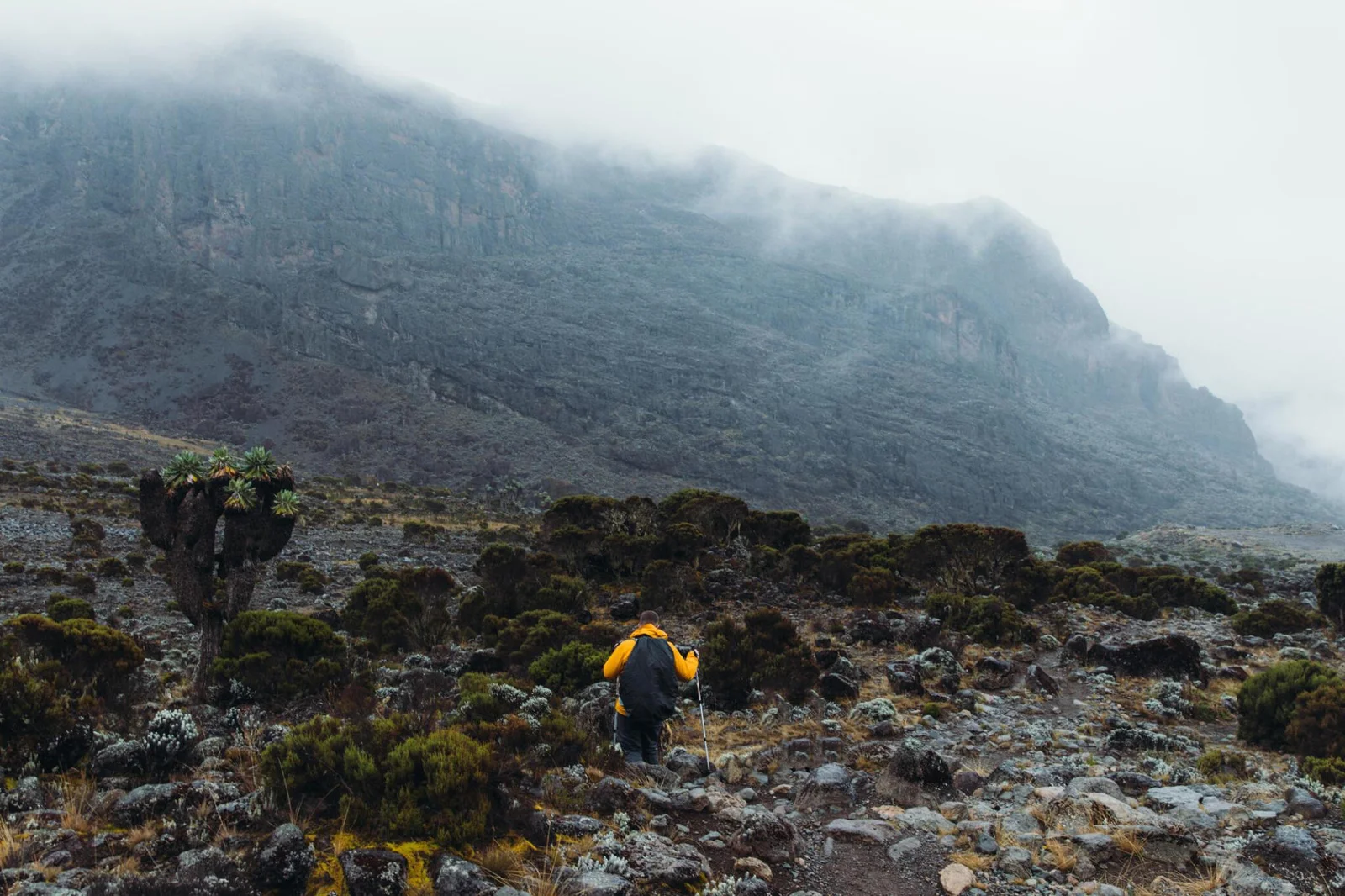 Begin the day by climbing the Barranco Wall, a thrilling but safe scramble that rewards you with panoramic views. After reaching the top, the trail undulates through alpine terrain with short ascents and descents to Karanga Camp, your lunch and overnight spot.